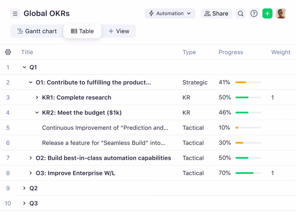 Yhdistä ylimmän johdon strategiat operatiiviseen työhön, jolloin jokainen organisaatiossa tietää miksi tekee töitä. Lopputuloksena motivoituneemmat tiimit ja nopeampi strategian toteutus.